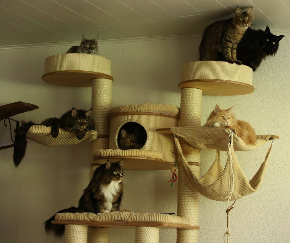 Maine Coon sind entspannt und von einer angenehmen Leichtigkeit. Sie sind lebhaft und bleiben ihr Leben lang verspielt. Bietet man ihnen nicht genügend Spielmöglichkeiten, so finden sie selber welche. Alles ist interessant und wird einer Betrachtung ausgesetzt.